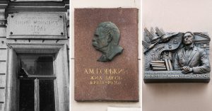 — Ну а после 1917 года случился бум, — говорит Иван. — Появилось много героических личностей, связанных с Гражданской войной и революцией, которых срочно нужно было увековечить на домах, в первую очередь в целях пропаганды большевизма и новых идеалов. К сожалению, доски того времени были не очень хорошего качества, и большинство из них не сохранилось. Хотя доски были интересные — созданные авангардистами, кубистами и прочими новаторами, которые экспериментировали с формой.