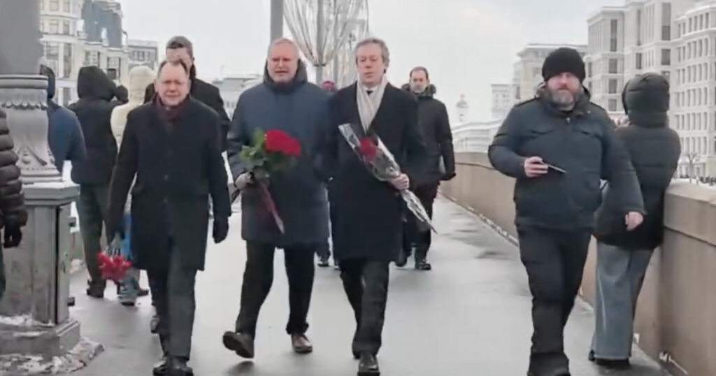 Европейские послы несут цветы к месту убийства Немцова в годовщину его смерти