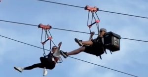 Сегодня курьер, видимо, так опаздывал с заказом, что решил воспользоваться зиплайном — время в пути составляет меньше минуты, так что кому-то, возможно, оставили большие чаевые за экспресс-заказ.