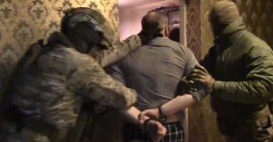 Мужчину задержали по подозрению в госизмене. Его личность не раскрывается, на видео, которое публикует ФСБ, замазано лицо.
