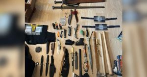 РЕН ТВ сообщает, что в ходе обысков изъяты мачете, тактический топор, восемь ножей, аэрозольный пистолет и перцовые баллончики, а также «флаги с нацистской символикой». Забрали и мобильный телефон, по которому, как считает ФСБ, поддерживалась связь с «главарями РДК».