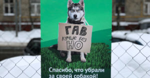 В Перово пошли другим путем и решили задачу креативно — развесили мотивационные плакаты. На них мопсы, хаски, бигли и другие собаки, включая нарисованных, напоминают людям о том, как важно убирать за питомцами. «Все собаки это делают, но не все хозяева убирают» — гласит подпись к картинке с виноватым мопсом, которого осуждают за то, что он нагадил в общественном месте. А хаски выражает свою собачью позицию, повесив на шею плакат «Гав лучше без но».