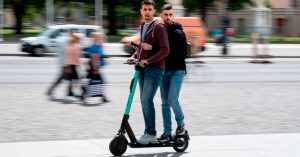 «Помимо агрессивной и опасной езды, которая подвергает пешеходов опасности, практикуется одновременное использование электросамоката лицами мужского пола. Двое мужчин едут на электросамокате, и один держит другого за талию», — объясняется в обращении.