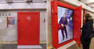 На этот раз — онлайн-двери, за которыми скрываются артисты и музыка. Словом, голубой огонек, только сжатый во временной отрезок длиной в пару минут (очень кстати, учитывая вечную суету в метро, особенно перед праздниками).