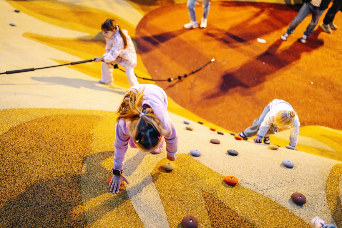 Современные детские пространства учитывают принцип «разумного риска» — идею о том, что полная безопасность лишает ребенка важного опыта. «Умеренные вызовы — высота, скользкая поверхность, возможность упасть на мягкое покрытие — помогают развить координацию, уверенность и умение оценивать опасность», — объясняет архитектор Мария Кутай. На площадке «Кот» специалисты ПИК смогли создать сложные архитектурные решения с ландшафтом, который подходит для разных активностей.