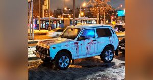 Фотографию жуткого авто выложил телеграм-канал «Новости Москвы». Подпись к посту весьма ироничная: «Главное, завтра смыть, а то могут не понять». Правда ли это декорация к празднику или чья-то бывшая пассия решила отомстить партнеру, испачкав его машину краской, доподлинно неизвестно.