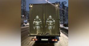 Художник нарисовал сестер Грейди из «Сияния» Кубрика на грязном грузовике