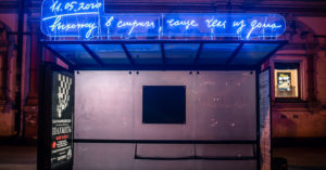 Светящаяся надпись «11.05.2020. Выхожу в стрим, чаще чем из дома» — это работа Игоря Самолета «Ближе». Именно эту запись художник оставил в своем дневнике в мае этого года.