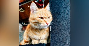 Напомним: кот откликается на клички Гараж и Рыжий. Его особые приметы: короткая шерсть, оранжевые глаза и черный ошейник с голубой погремушкой. Кроме того, у кота отсутствует правый клык (стоит иметь в виду тем, кто рискнет заглянуть ему в пасть). Животное кастрировано и чипировано.