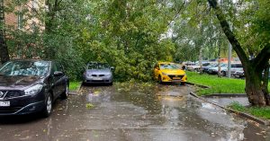 Из-за ливня упало 57 деревьев и повреждено 55 машин, в аэропортах задержаны десятки рейсов
