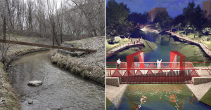 Как пишет Сергей Собянин в своем блоге, проект разрабатывали совместно с местными жителями. Здесь появится мини-парк с набережной и зонами отдыха у воды, лавочками и вечерним освещением. А перейти овраг можно будет через новый красный мост — такое благоустройство чем-то напоминает парк «Красногвардейские пруды».
