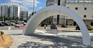 Качели в форме полукольца установили у Бабушкинского ЗАГСа