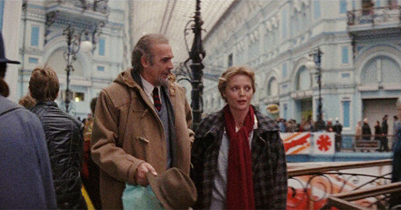 Один из двух (второй — «Красная жара») американских фильмов, авторы которых получили возможность съемок в самом сердце Москвы. Речь в картине по роману маэстро шпионских детективов Джона Ле Карре идет о заключительном этапе холодной войны. Советский физик по прозвищу Данте (Клаус Мария Брандауэр) через свою бывшую любовницу Катю (Мишель Пфайффер) передает британскому книгоиздателю и алкоголику Барли Блэру секретные данные, касающиеся советского оружия. Блэра берут в оборот английские и американские спецслужбы. Однако в ходе сложной шпионской игры Блэр влюбляется в Катю и оказывается перед сложным моральным выбором между сомнительными государственными и безусловными собственными интересами. «Русский дом» сегодня можно смотреть как документ, фиксирующий состояние СССР накануне распада — разбитые машины, мрачные улицы, погода шепчет. Ну а ГУМ — место, куда Катя тащит Блэра в первую же встречу, потому что там «сегодня туфли дают». Во время стремительной прогулки по производящему слегка обветшавшее впечатление магазину Катя также рассказывает, что в стране коррупция, дефицит и вообще все как-то не очень.