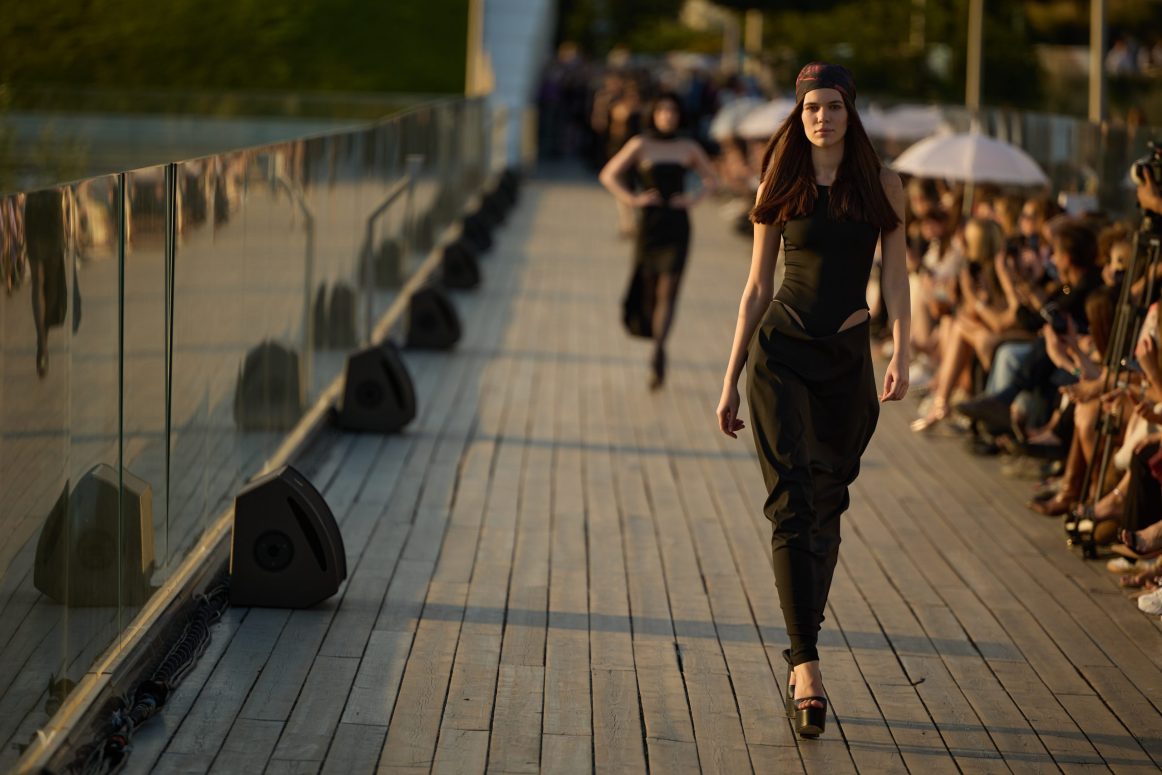 Особенно выделился дебют московского бренда muliér. Их шоу «Город, которого нет» открыло шестой день Московской недели моды и было посвящено утопическим архитектурным проектам Москвы 1920-х, которые так и не воплотились — башне Татлина, Дворцу Советов. Дизайнер Василиса Макарова соединила футуристичные платья с меховыми мантиями, а традиционные кокошники — с кожаными балаклавами. Получился диалог разных эпох и один из самых продуманных показов недели. Зрители еще до начала шоу могли познакомиться с материалами о конструктивизме, что добавляло глубины восприятию.