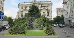 На днях территорию на Лялиной площади огородили забором и повесили информационный щит, который сообщает об установке монумента С. Я. Маршаку. В списке работ, которые выполняет ООО «Реалстройпроект», значится установка памятника высотой 4,4 м и двух скамеек, а также мощение территории, укладка бордюров и озеленение. Работы уже идут. Муниципальный депутат Басманного района Евгения Ремизова сообщает, что на щите нет данных, кто курирует установку памятника от департамента культурного наследия.