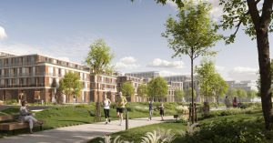 «Зеленый каркас городка представляет собой связанную с окружением цепочку зеленых городских пространств: пешеходные променады с дождевыми садами, бульвары, улицы и площади. У реки образуется большая благоустроенная территория для отдыха и спортивных занятий; пешеходные тропы, в том числе с маршрутом в сторону будущего метро “Летово”», — пишет автор проекта архитектурное бюро DNK ag.