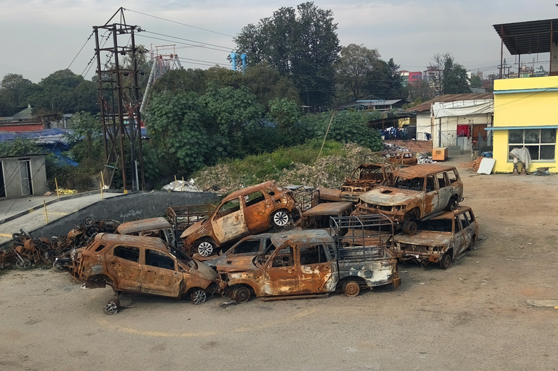Напоминанием о недавней зумерской революции в Катманду служат груды сожженных полицейских машин недалеко от правительственного квартала и разгромленные здания парламента, министерств и прокуратуры, вокруг которых ходят полицейские.