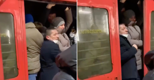 Видеозапись опубликовали в телеграм-канале «Что там в Москве?». На ней видно, что пассажиры с трудом забиваются в переполненный тамбур электропоезда — машинист не может закрыть двери. «А вагон не треснет?» — задают справедливый вопрос авторы поста. О социальной дистанции спрашивать даже не приходится.
