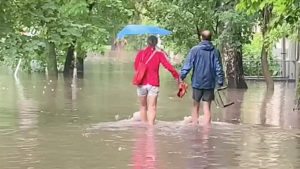Власти предостерегают: дожди могут продлиться до вечера, но москвичи, кажется, не переживают: в сети появляются видео, как, взявшись за руки, парочка идет под деревьями по колено в воде, а мальчик надул лодку и гоняет с ней по улице.