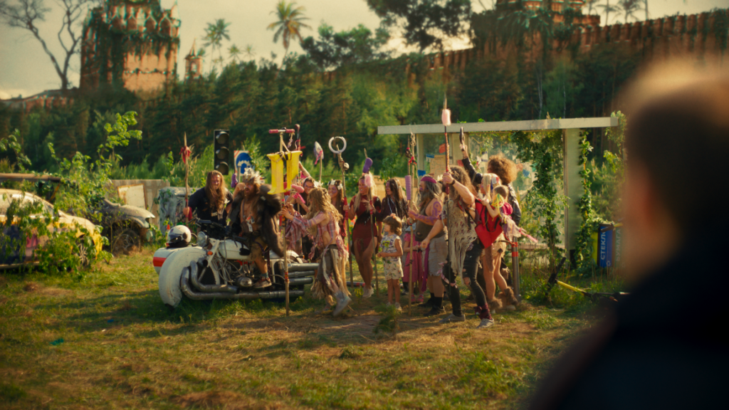 Скоро Коля и Робогозин лично встречают футуристичных дикарей — с эйрподсами поверх золотых сережек в носу, филлерами в губах и экибанами из пластиковых вилок на голове. Цели жителей новой Москвы просты — отжать у путешественников мотоцикл и, возможно, съесть милиционера Валентина, который увязался за героями.