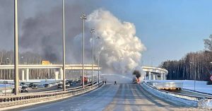 Киевское шоссе полностью перекрыто из-за горящего грузовика с пропаном