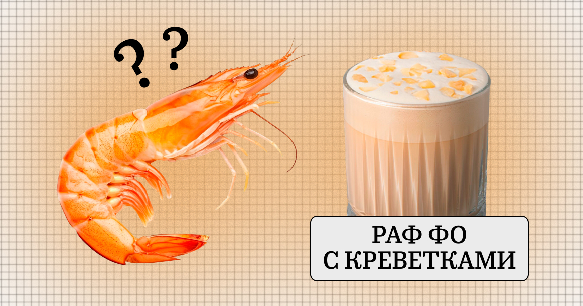 Популярный в Москве суп — фо, а главный напиток, понятное дело, кофе (не исключено, что даже и раф). И, видимо, кто-то в One Price Coffee решил: а почему бы их не соединить? Так родился «Раф Фо с креветками» — напиток, который звучит как кулинарный кошмар, но продается как «самый смелый эксперимент» кофейни.