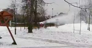 Коммунальщики не могут дождаться зимы и стреляют из снежной пушки в Черкизовском парке