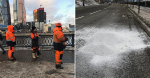 Коммунальщики высыпали на дорогу чересчур много реагента и сбросили лишнее в Москву-реку