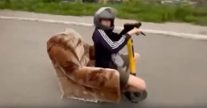 Вряд ли такому транспорту на дороге позавидуют водители машин, но люди наверняка будут расступаться из страха быть сбитыми уже не обычным самокатчиком, а мчащимся по асфальту креслом на колесах.