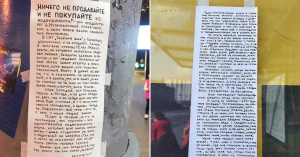 Ну а дальше записки стали появляться уже не только в центре Москвы, но и в более отдаленных районах. В одной сказано, что ей угрожал мойщик остановок (очерк приправлен конспирологической теорией о врачах и ковиде). В другой — что ее заставляют раз в три месяца ездить в Харьков, так как 25 лет она живет в России без вида на жительство (в свои 62 года она даже не пытается получать пенсию, лишь бы не депортировали). К деньгам у нее вообще интересное отношение, чем делится в очередном выпуске своей «стенгазеты». Считает, что любая работа — пособничество бандитам.