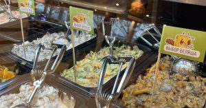 До 4 мая можно попробовать картошку с растительными наполнителями: «Грибы с тофу в кунжутном соусе», «Грибы с фасолью в горчичном соусе» и «Грибной тартар», еще в постном меню появились щи из квашеной капусты.