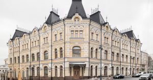 На входе в торговый дом вас встречают огромная зала с полом, отделанным мозаикой из мелких кусочков разноцветного мрамора, изящная лестница с мраморными перилами, потолки с лепниной и золотые канделябры и гобелены на стенах.