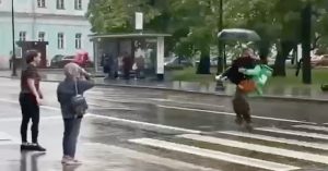 В Москве первые за сезон серьезные дожди — время для джентльменских поступков.