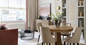Но самым приятным сюрпризом для заказчиков стало появление в интерьере обеденного стола — настоящего, большого, круглого. И раздвижного — при желании он может становиться овальным и вмещает восемь человек.