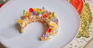 Шефом в обновленном месте стал Роман Палкин («Морошка для Пушкина», Beef Zavod, Big Wine Freaks). В меню — русские изыски с французским изводом. Честь русской кухни призваны отстаивать борщ (с гранатовым соком; 580 руб.), уха (из трех видов рыб; 880 руб.) и мясная солянка (920 руб.). Оливье с черным трюфелем, пикелированным языком и ферментированными желтками обойдется в 860 руб., а котлета по-киевски из перепелки — в 580 руб. Французские же корни заведения наиболее заметными будут в луковом супе (380 руб.) и сладкой классике, за которую все Ladurée изначально и полюбили: круассаны, эклеры, мильфеи и, конечно, пирожные макарон.