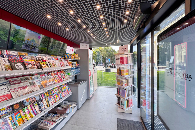 Первые медиакиоски установили в рамках пилотного проекта на «Краснопресненской» (недалеко от зоопарка) и у метро «Шаболовская». Изменения бросаются в глаза сразу: в медиакиоск можно войти (то есть это не просто палатка с окошком). Скорее медиакиоск похож на мини-магазин, только с акцентом на книги, газеты и журналы.