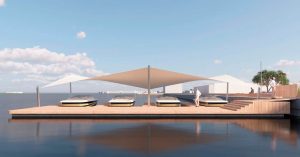 «Горожане смогут пользоваться услугами водного такси, чтобы быстро добраться по реке до нужной точки. Переговоры с оператором такси находятся на финальном этапе», — рассказывают создатели.