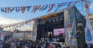 В этот раз фестиваль совпал с мероприятием, посвященным Республике Башкортостан, оно проходило на Дворцовой площади. Поэтому все пространство от Зимнего дворца до Гостиного двора представляло собой сплошные рамки, рамки, рамки, «все из карманов на стол» и курсирующих росгвардейцев в обмундировании суровых черепашек-ниндзя. Для фестиваля перекрыли автомобильное движение по набережным, что и здорово, но вот этот театр безопасности вводил гуляющих по центру потенциальных зрителей в заблуждение, что можно отстоять очередь к рамкам, сдаться с потрохами и пройти наконец к сцене.