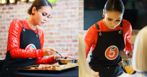 Чемпионка мира и Европы по художественной гимнастике, а также телеведущая и кулинар провела мастер-класс по приготовлению десерта из батата. Мероприятие было организовано торговой сетью «Пятерочка».