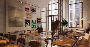 Рендеры первого кафе, которое откроется в ЖК «Царская площадь» на Ленинградке, впечатляют. Интерьер в теплой гамме с натуральными фактурами, лаконичной мебелью и артом на стенах подготовила Анастасия Землянская, которая, кстати, также занималась и проектом Wontoneria.