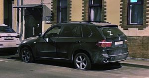 Фотография автомобиля BMW X5 с наклеенной буквой Z на заднем стекле появилась в соцсетях. У машины спущены все четыре колеса.