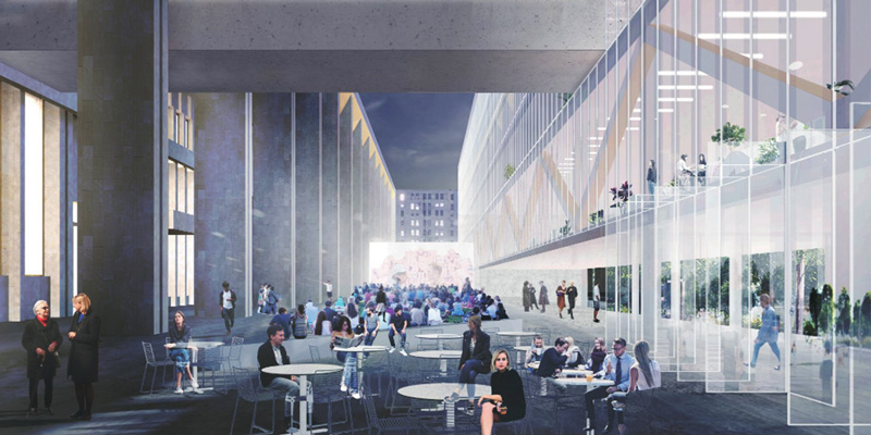 На крыше МДМ сделают смотровую площадку, сзади построят многоуровневый культурный кластер (спасибо, что не жилой комплекс!), вокруг здания обещают установить арт-объекты и организовать пространство для кафе, а всю территорию МДМ и вокруг него сделают частью прогулочного маршрута из парка Горького.