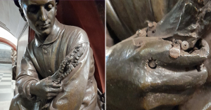 То ли вандализм, то ли крайне странная попытка спасти скульптуру.