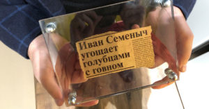 Блогер-москвич Тимофей Васильев (он же Timofey V) продал вырезку из старой газеты с заголовком «Иван Семеныч угощает голубцами с говном» за 100 тыс. рублей, о чем и сообщил в Facebook.
