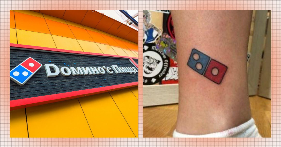 В 2018 году сеть пиццерий Domino’s, тогда еще не ушедшая из России, запустила особенно щедрую рекламную акцию «ДоминосНавсегда»: участникам предлагали сделать татуировку с логотипом компании на видимой части тела, а взамен обещали сто бесплатных пицц ежегодно на протяжении ста лет. В акции могли поучаствовать первые 350 человек, готовых подтвердить любовь к пицце таким образом: тату должна была быть не меньше двух сантиметров и строго соответствовать фирменным пропорциям.