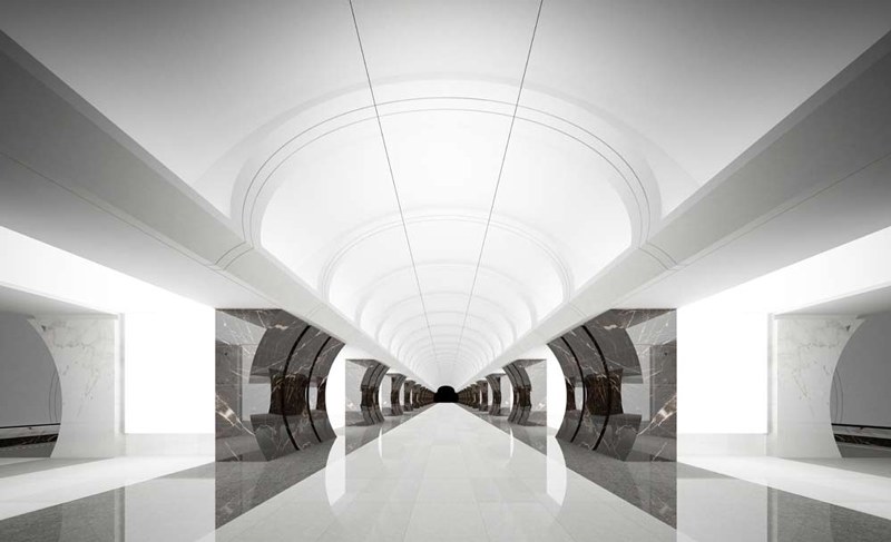 Располагаться станция должна была под Екатерининским парком и площадью, а выходов могло быть два — непосредственно на площадь (сейчас там сквер) и на Олимпийский проспект, в районе автоплощадки у театра Дурова, напротив СК «Олимпийский». В 2011 году о ней снова вспомнили, стали готовить проект вестибюля и зала (к 2013 году он был готов — см. иллюстрацию) и даже начали сооружать обходные тоннели для поездов Кольцевой линии на время строительства. В 2012-м строительство отсрочили на неопределенный срок. А в 2017-м от него вроде бы окончательно отказались, в том числе потому, что строить и прокладывать тоннель надо было вручную, отбойными молотками, из-за большой глубины, на которой должна была располагаться станция. (Кстати, именно так сейчас неподалеку строят «Шереметьевскую» Большой кольцевой линии, которая призвана заменить марьинорощинцам точку пересадки — она откроется даже раньше «Суворовской», в 2022 году.)