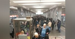 На кадрах, опубликованных в соцсетях, видно, что на станциях царит столпотворение.