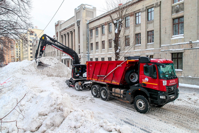 Концерт рассосался, а дюна и ныне там. Вообще потихоньку «потрошить» ее начали еще вчера. Но поскольку снегопады продолжались, получилось, что одни грузовики снег увозили, а другие привозили. По состоянию на утро коммунальные службы продолжают неспешно убирать снег — можно делать ставки на то, сколько часов или дней осталось дюне.
