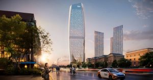 С площади Тверская Застава, как можно понять по рендерам, этот небоскреб будет отлично видно — соседний проект Slava он будет превосходить по высоте примерно в полтора раза. Так что слова про доминанту здесь отнюдь не преувеличение.