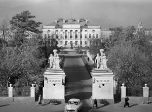 Тут проходили выборы новых академиков и президентов Академии наук СССР, тут в большом бальном зале убеленные сединами академики выстраивались в очередь, чтобы поставить свою подпись под поздравительным адресом товарищу Сталину, а президент Академии наук престарелый Владимир Леонтьевич Комаров получал тут в подарок к своему 75-летию от среднеазиатских ученых тюбетейку и халат.